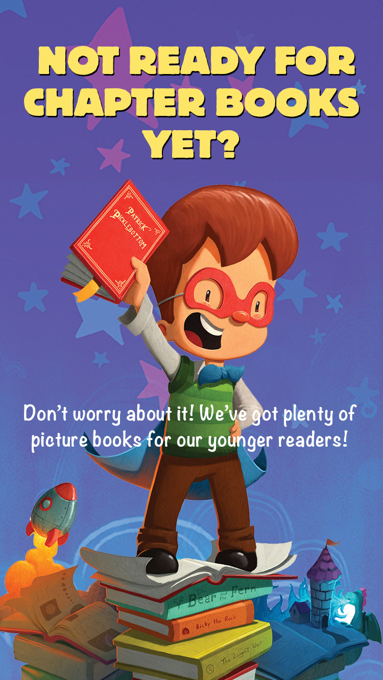 I'm excited for you to join me on all of my adventures! For older kids, grades 3 and up, you can help me crack 12 unique cases in my book, The Patrick Picklebottom Mysteries. For younger kids, grades K – 3, I have a whole collection of picture books - I especially like the one where the floor to my house turns into lava, and I have to avoid it while going on a super cool quest for my dad."